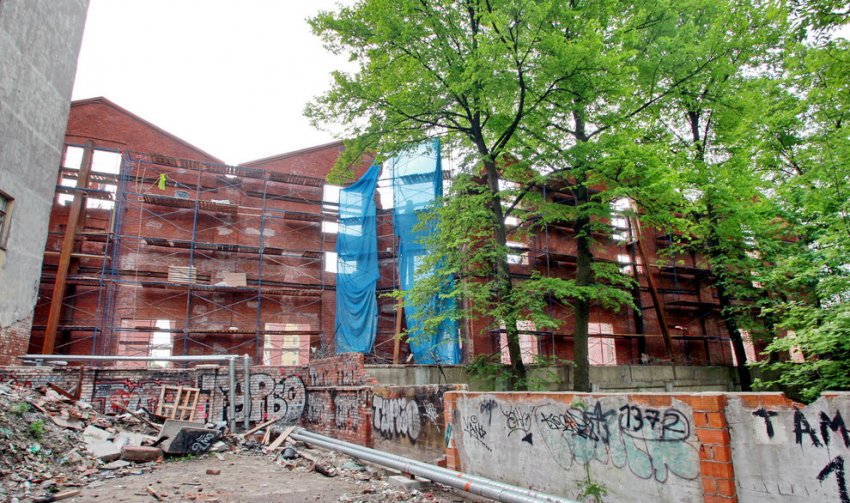 Сейчас внутри ведутся активные демонтажные работы. По сути, от здания остались только внешние стены. Заказчиком выступает АО «Главное управление обустройства войск» Минобороны.