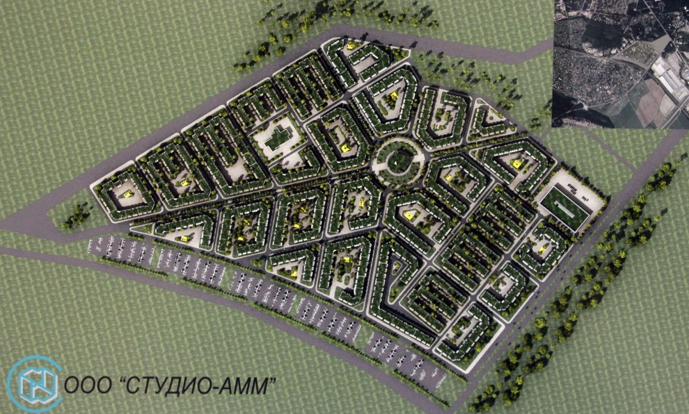 Все жилые дома будут четырехэтажными. В общей сложности их ожидается 27 штук. Для отличия одного квартала от другого применят разные цветовые и отделочные решения фасадов. Открытые автостоянки решено разместить централизованно вдали от крайних корпусов, а именно вдоль железной дороги.