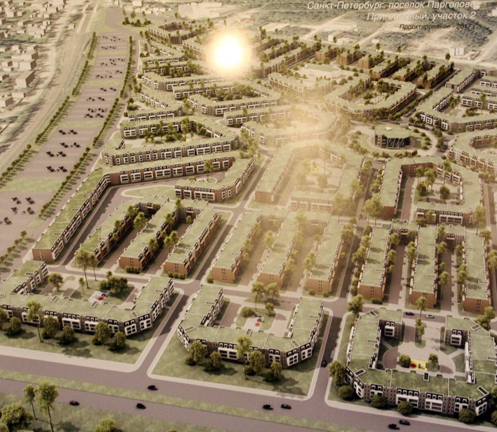 Северо-восточнее станции Левашово будет построен малоэтажный жилой микрорайон. Центром градостроительной композиции станет круглая площадь, от которой в разные стороны пойдут шесть улиц-лучей.