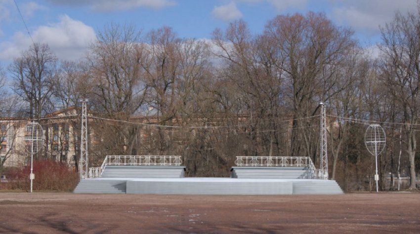 В придачу к сцене изготовят съемную крышу (ее можно будет монтировать в непогоду; постоянный навес исказил бы облик парка) и приставной пандус для инвалидов.