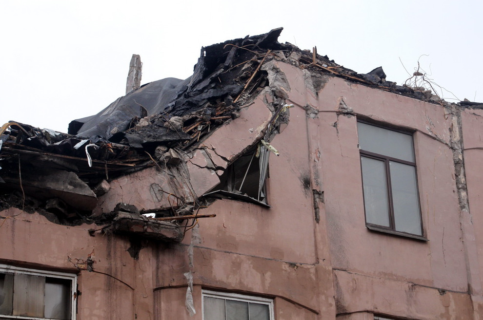 За минувшую ночь здание на Большом Сампсониевском проспекте снесли наполовину. Накануне в нем произошло обрушение четвертого этажа, что, предположительно, стало следствием диверсии.