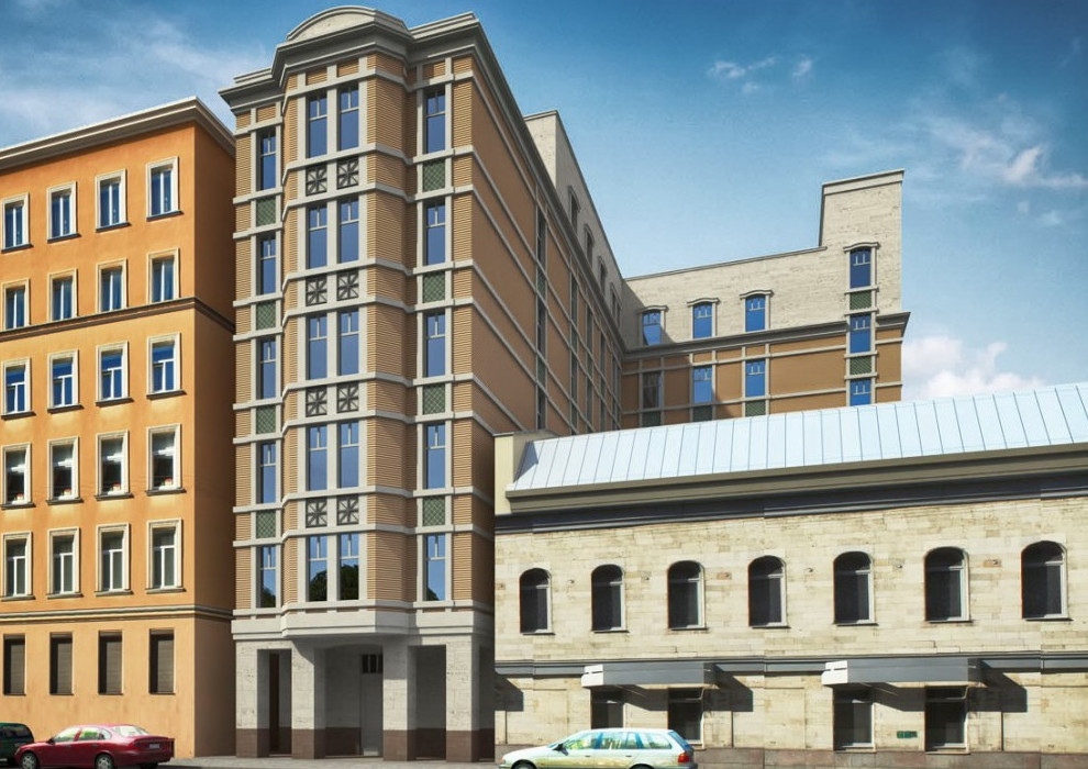 Документацию делало ООО «Испытательный центр „Стройэксперт“». В девятиметровую щель между домами 2а и 4 по Транспортному переулку выйдет шестиэтажный фасад с пятиэтажным эркером. Дворовый объем сделают на этаж выше, при этом он будет хорошо заметен с улицы над двухэтажным паркингом (дом 4).