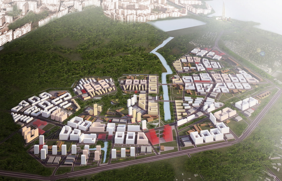 Многоэтажная застройка ожидается в западной части; там же будут офисные здания, торговый комплекс и объекты сферы досуга. Юг, близ Лахты и Ольгина, насытят объектами инфраструктуры. Север останется малоэтажным, как сейчас.