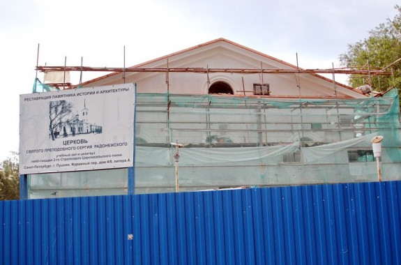 Осенью планируется завершить реконструкцию церкви Сергия Радонежского в Фуражном переулке, 4, города Пушкина. Ее восстанавливают из автошколы.
