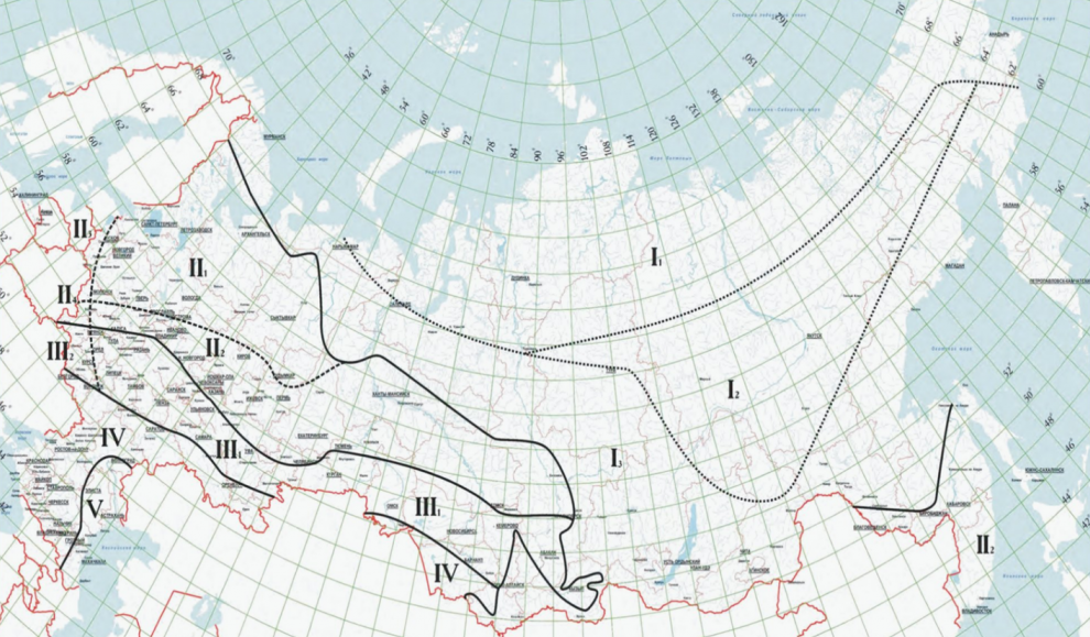 Первая дорожно-климатическая зона делится на три подзоны. К первой относят местности со сплошным распространением мерзлых грунтов. Во второй подзоне такие грунты лишь частично распространены. В третьей – также находятся территории с вечной мерзлотой, но с меньшей площадью ее распространения и меньшей глубиной промерзания.