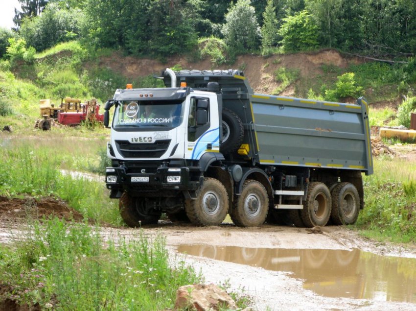 ООО «ИВЕКО-АМТ» (г. Миасс Челябинской обл.) производит грузовые автомобили по лицензии компании IVECO. Самосвал IVECO-AMT 753910-10 (8×8) предназначен для экстремального бездорожья, имеет полную массу 60 т, грузоподъемность до 40 т, укомплектован самосвальным кузовом собственного производства IVECO-AMT из стали Hardox емкостью 22 м3. Жесткость конструкции кузова обеспечивается особой геометрией панелей.