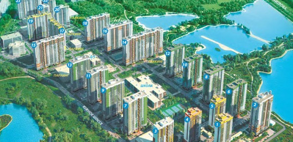Комплекс будет состоять из девяти 25-этажных зданий, раскрашенных в разные цвета. Часть высоток станет желто-белой, часть бело-оранжевой, а часть бело-зеленой. Сами фасады зданий не будут иметь никаких декоративных элементов, отличаясь друг от друга незначительно. Спроектировало здания ЗАО «Домостроительный комбинат „Блок“». Первые постройки в составе жилого комплекса должны сдать уже в 2014 году.