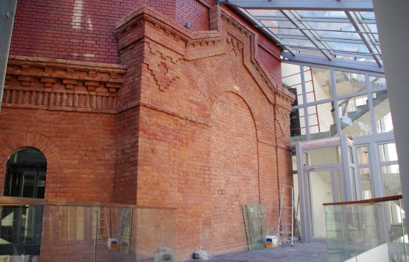 Строительство театрального комплекса началось три года назад со сноса бывших театральных мастерских, демонтажем занималась группа компаний «Крашмаш». На данной территории тогда располагалось историческое здание склада балетных декораций, возведенное в 1890–1891 годах по проекту архитектора Александра Гешвенда в «кирпичном» стиле. От здания оставили две фасадные стены, которые отреставрировали и включили в новый театр.