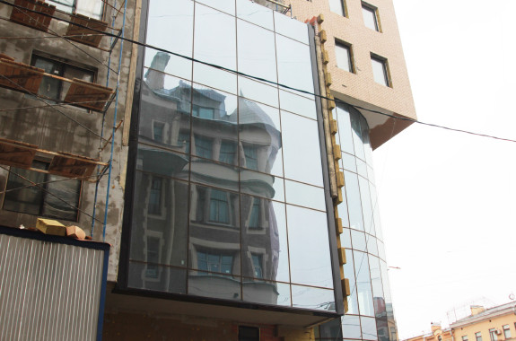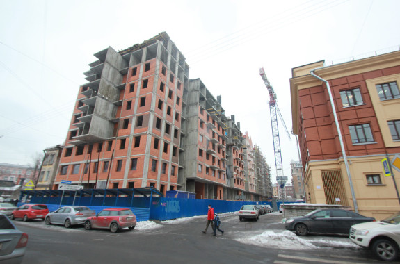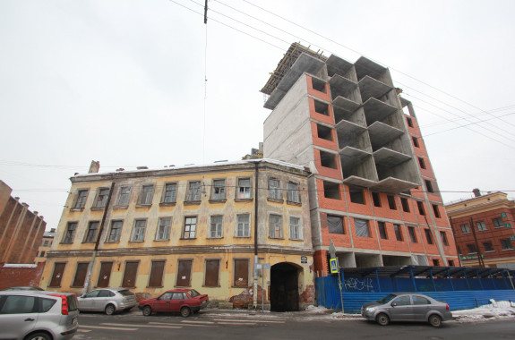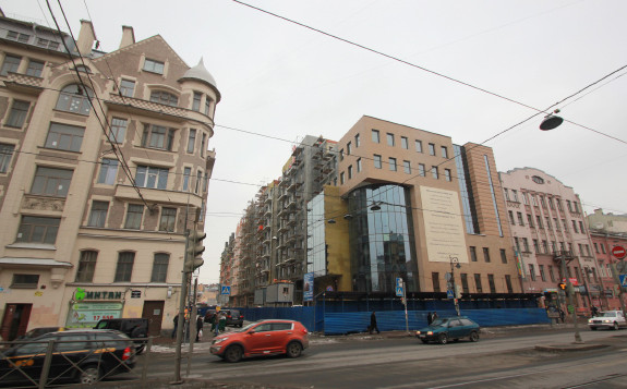 Строительство жилого и офисного дома на Лиговском проспекте, 123, собираются завершить летом. Его возводят на месте исторических зданий.