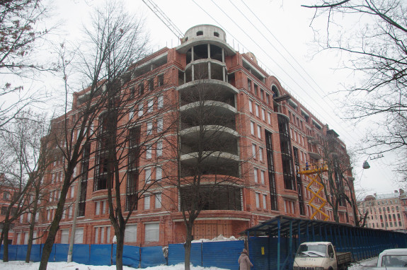 На участке в 6 тыс. кв. метров возводится восьмиэтажный жилой дом со встроенными помещениями офисов и автостоянкой общей площадью 15 тыс. кв. метров. В нем будет 84 квартиры. Разрешение на строительство действует до 21 ноября 2013 года.
