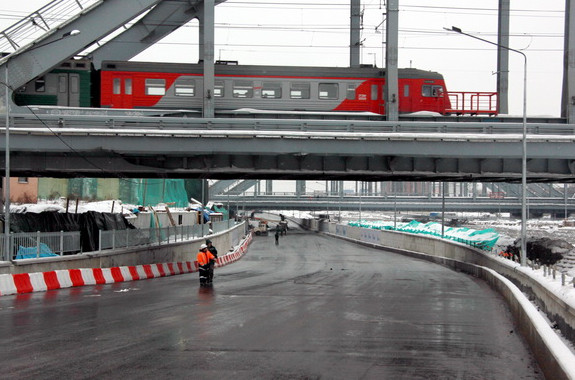 Транспортный объект был торжественно открыт в конце минувшего года. Одновременно водители смогли увидеть, что здание-памятник повреждено, как минимум в одной из его стен зияет дыра. Гендиректор «Мостостроя № 6» Антон Новиков заверил, однако, журналистов, что данные повреждения не имеют отношения к деятельности компании. Он заявил, что несколько лет назад постройка была повреждена, и с тех пор владелец, ОАО «РЖД», ее не восстанавливал.