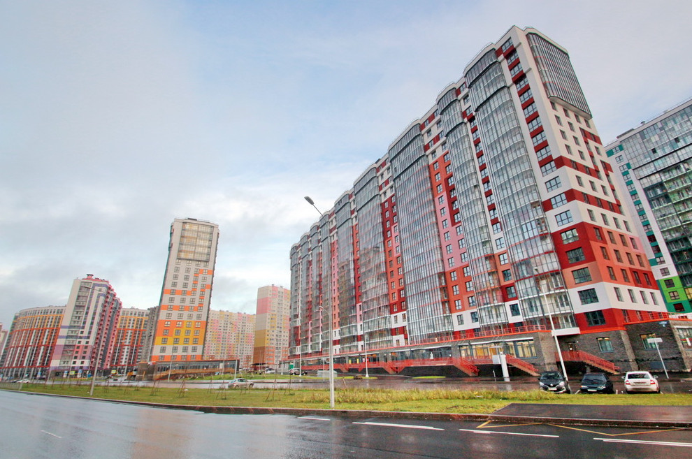 На Комендантском проспекте в Каменке завершилось строительство жилого комплекса от «Лидер групп». Однотипные коробки расставили вдоль дороги елочкой.
