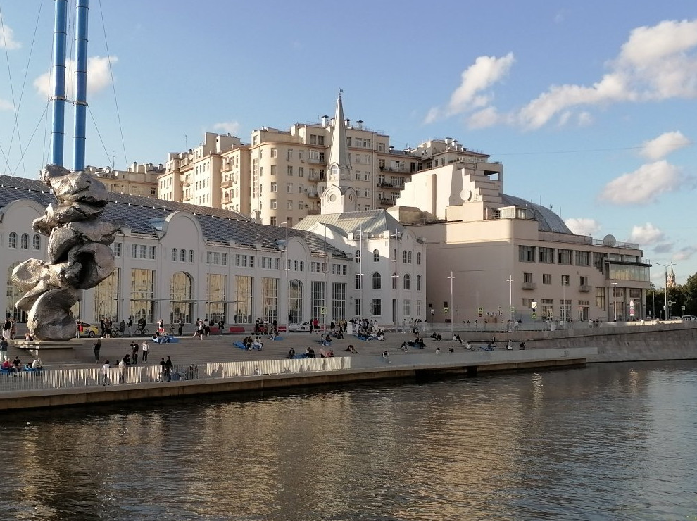 (на фото вверху - Дом культуры "ГЭС-2", слева видна наделавшая много шума скульптура "Большая глина №4" авангардного скульптора Урса Фишера)