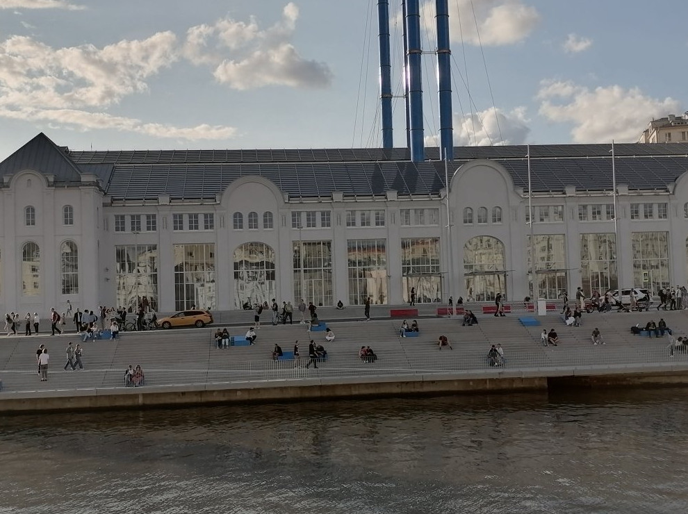 Дом культуры "ГЭС-2" с прилегающим к нему спуском к воде, который сразу же облюбовала молодежь