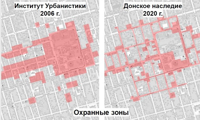Если вспомнить, то по существующему законодательству охранная зона должна охранять памятник и ценную застройку, окружающую его. Если объект культурного наследия находится среди зданий конца XIX века, то логично, что этот комплекс нужно сохранить, потому что окружающие строения являются ценной фоновой застройкой, попадающей под охранную зону памятника. В предыдущем проекте объединенной охранной зоны, такие комплексы выделяли целыми кварталами, которые были защищены от сноса. А в нынешнем - такие зоны сохраняются в центре города вдоль улицы Большой Садовой и ниже, возле Центрального рынка, а также в Пролетарском районе Ростова. Но вот только они никоим образом не защищены в проекте «Донского наследия».