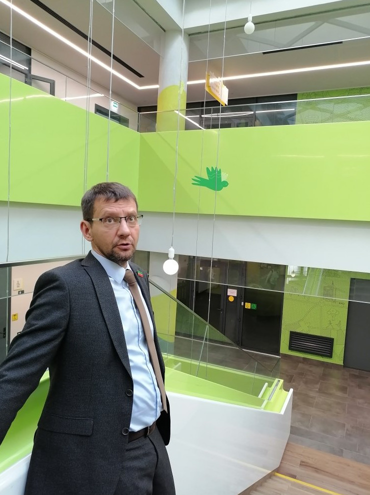 ...Идем по коридорам «Адымнар» вместе с директором школы, Айдаром Шамсутдиновым и архитектором, руководителем проекта полилингвального комплекса «Адымнар» Анной Хакимовой.