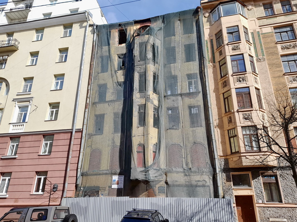 Весной «Канонер» рассказал о начале капитального ремонта. Застройщиком на щите указано ООО «Строительная компания „Ромас“». Согласно проекту, дворовый флигель хотят надстроить двумя этажами — классическим и мансардным, добавить пятиэтажный трапециевидный эркер по аналогии с эркером лицевого фасада и убрать внешнюю лифтовую шахту.