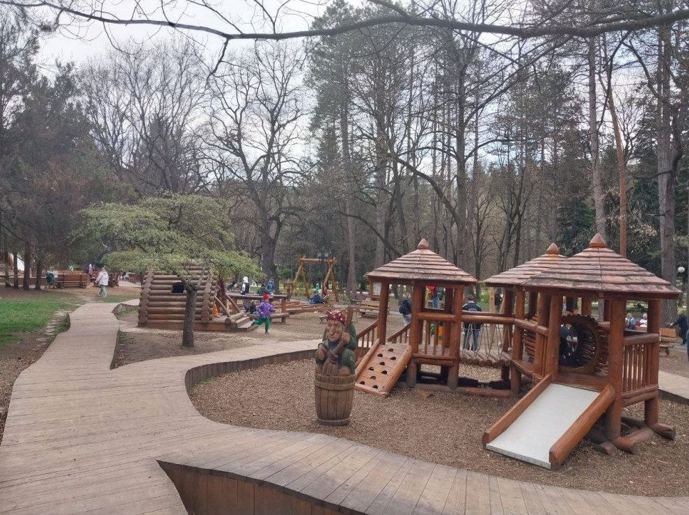 Попала в кадр и детская площадка «Лукоморье» национального парка «Кисловодский», где, по фильму, проходили семейные советы, а внук Гены качался на качелях.