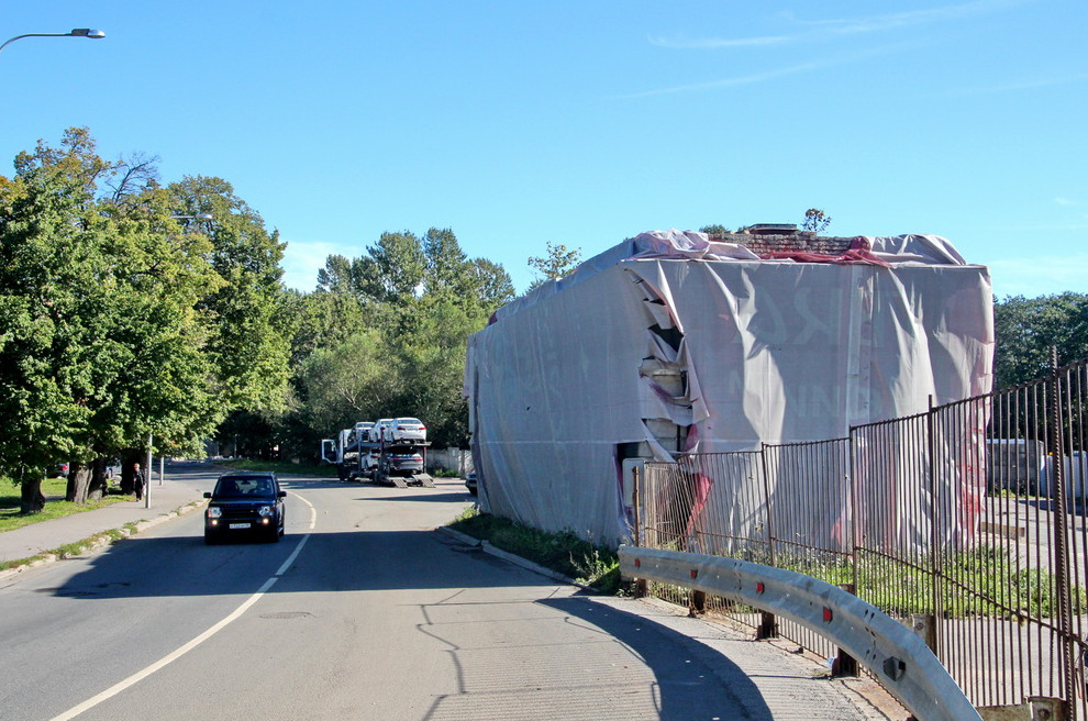 В последнее время здание стояло заброшенным и затянутым зеленой сеткой. В таком виде оно сохранялось и после того, как в 2021 году за ним построили бизнес-центр на Шкиперском протоке, 12, корпус 2, и восстановили соседнюю ротонду.