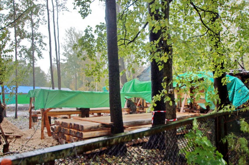 Поскольку «более 50% конструкций здания имеют III степень биоповреждения», «проектом предусмотрена разборка конструкций крыши и перекрытий, переборка сруба с выбраковкой деревянных элементов для определения элементов, которые возможно сохранить». После повторной сборки сруба его утеплят со стороны фасадов и покроют доской.