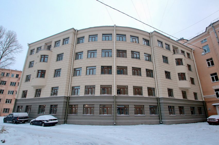 Пятиэтажное здание было сооружено в 1937 году. В плане постройка напоминает бумеранг. Некогда она формировала нынешнюю Кировскую площадь, пока перед ней не построили дом 16 по проспекту Стачек. В 2009 году пятиэтажку признали аварийной, людей расселили.
