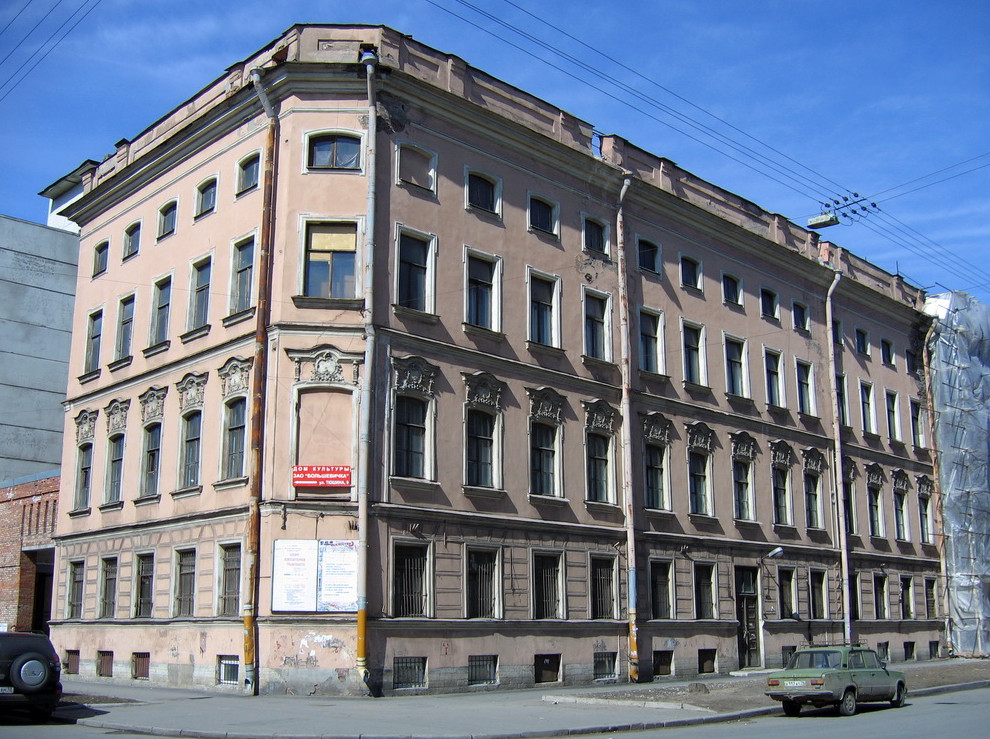 Дом Кожевникова на улице Тюшина, 9/7, на углу с Воронежской улицей был построен в 1864 году по проекту архитектора Людвига Бульери. В 1930-х годах его надстроили двумя этажами, внутри расположился клуб завода «Большевичка». Больше десяти лет здание пустовало. В 2022 году объект ушел с торгов Сергею Саковичу. В 2023-м КГИОП снял с дома статус выявленного памятника — по экспертизе, проведенной по заказу господина Саковича.