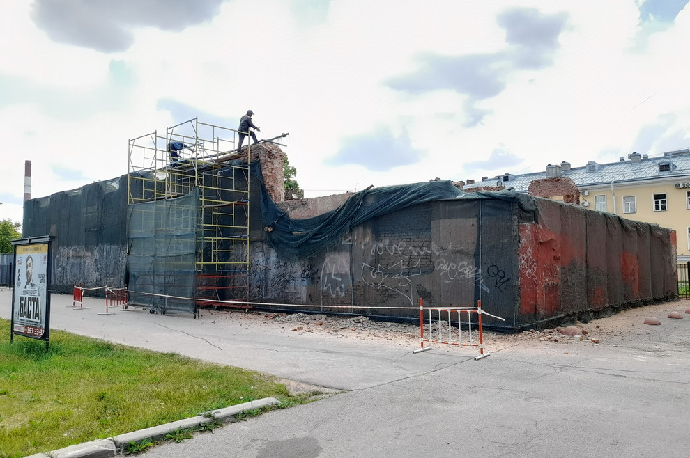 Летом прошлого года корреспондент «Канонера» заметил, что второй этаж вручную разбирают. КГИОП выяснил, что застройщик передумал проводить снос. Проводимые работы ведомство назвало капитальным ремонтом, проект выполнило ООО «СЗРК+».