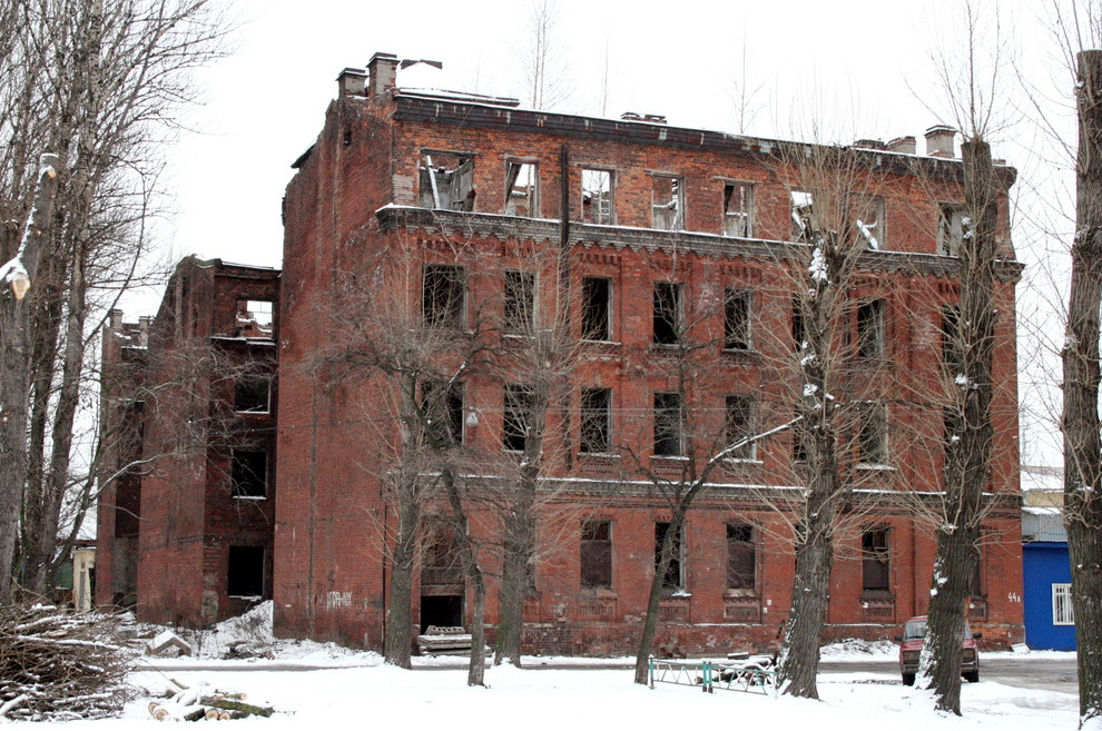 Во дворах у пересечения проспекта Обуховской Обороны и Общественного переулка сносят торговые бани братьев Нейдлер. Это заброшенное здание стоит на пути моста, который строят через Неву в створе Большого Смоленского проспекта.