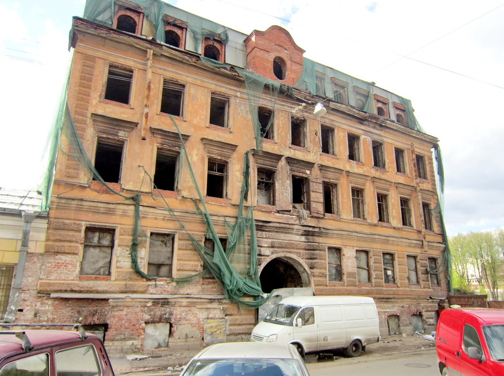 В случае с домом на улице Черняховского они поступили так же. Впрочем, поскольку этот дом успели перевести в нежилой фонд, помещения продавались не как квартиры, а как апартаменты. Позднюю мансарду, исказившую облик доходного дома, сносить не стали. Фасаду в соответствии с традициями группы «Реновация» изменили декор, в частности сандриков второго этажа и венчающего карниза.