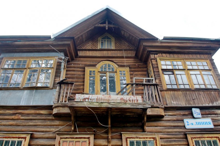 Двухэтажный деревянный дом, располагавшийся на внутриквартальной территории, был построен до революции. Он сохранял элементы балкона второго этажа с дверью, закругляющейся кверху, и резное крыльцо.
