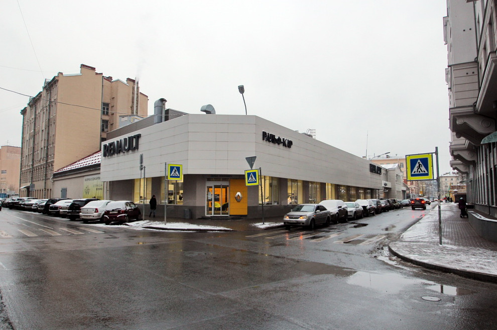 Прежде здесь, на Малой Зелениной улице, 4, стояли два здания — угловое (литера В, 1949 года) и выходящее только на Малую Зеленину (литера А, 1953 года). Больше десяти лет назад прошла их реконструкция. Ее провели по заказу ЗАО «Рольф-арт дивижн», после чего в угловом открылся автосалон «Ральф-кар», а во втором — станция технического обслуживания.