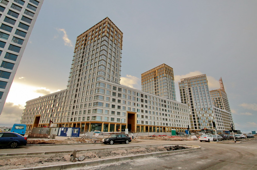 Жилой комплекс вдоль улицы Челюскина и проспекта Крузенштерна строит Glorax Group в лице ООО «Специализированный застройщик „НТВО“». Концепцию зданий разработало голландское бюро KCAP Holding B.V., а адаптатором выступило ООО «Проектно-производственная фирма „А.Лен“» Сергея Орешкина. Дома было решено выделить золочеными нефункциональными верхушками из металла, похожими на конструкции сложившихся башенных кранов. На сей момент сданы четыре жилых дома и школа.