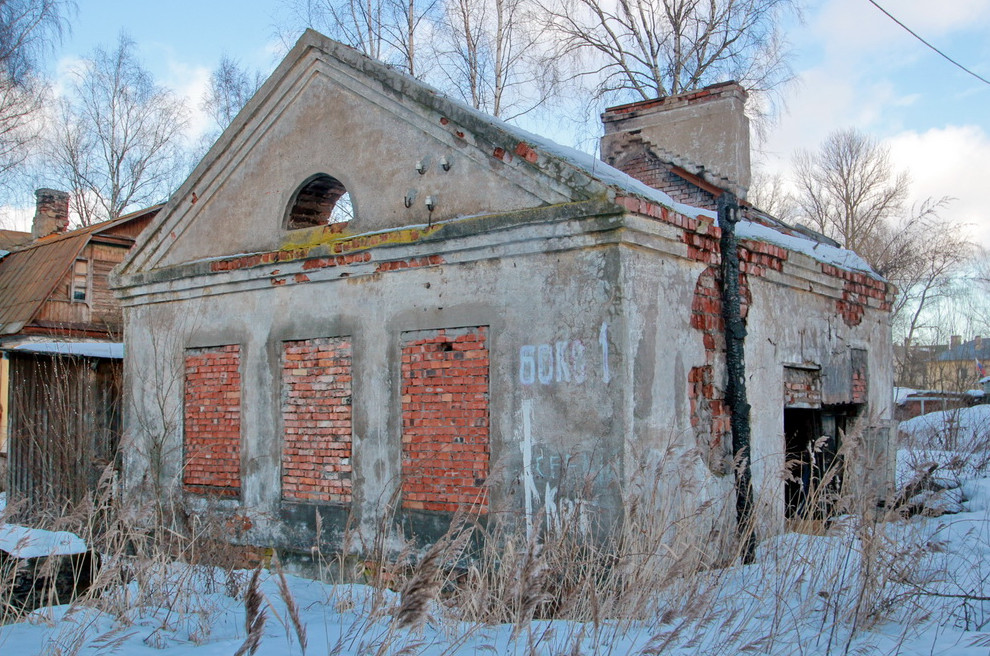 Одноэтажная «сталинка» на три окна с высоким фронтом расположена позади домов на Красной улице, 14, корпуса 1 и 2. В последние годы она была заброшена. Официально ее не существует: она не стоит на кадастровом учете и находится вне земельных участков.