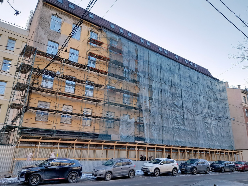 Год назад «Канонер» рассказал о лесах, появившихся на фасадах. Заказчиком, по данным ГАТИ, выступило ООО «Ленинградская домостроительная компания». На сайте furman1845.ru сообщалось, что в секции создается «апарт-отель Furman 1845». Инициатором указывается ООО «ДЭК».