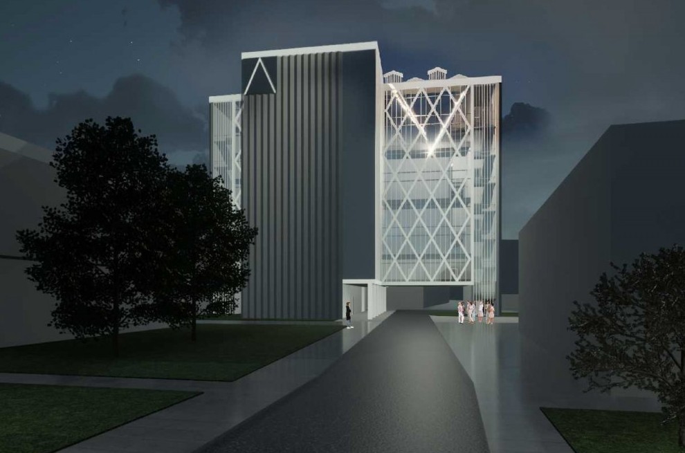 В отделке фасадов планируется применить «архитектурный бетон», причем на торцевых фасадах он будет «с треугольными ячейками, создающими дополнительную светотень».