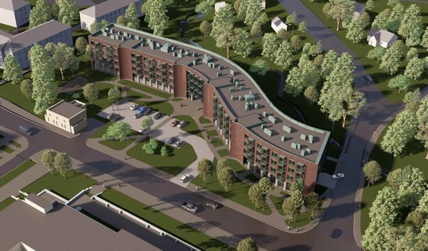 Теперь представлен проект будущего жилого дома. Его по заказу ООО «Специализированный застройщик „Эрбиай-5“» разработало ООО «Проектная культура». Четырехэтажка выполнена в форме змеи и торцом примыкает к Гостиной улице.