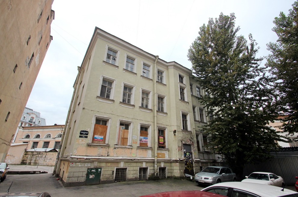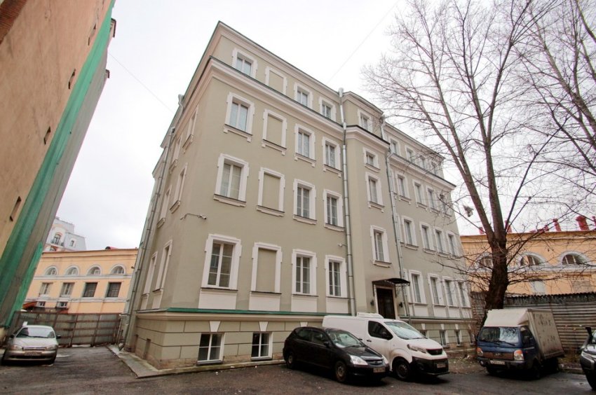Трехэтажный на высоком подвале флигель был построен предположительно в XIX веке. Его признали аварийным в 2011 году и затем расселили. В 2016-м объект с торгов купила Ирина Злобина.