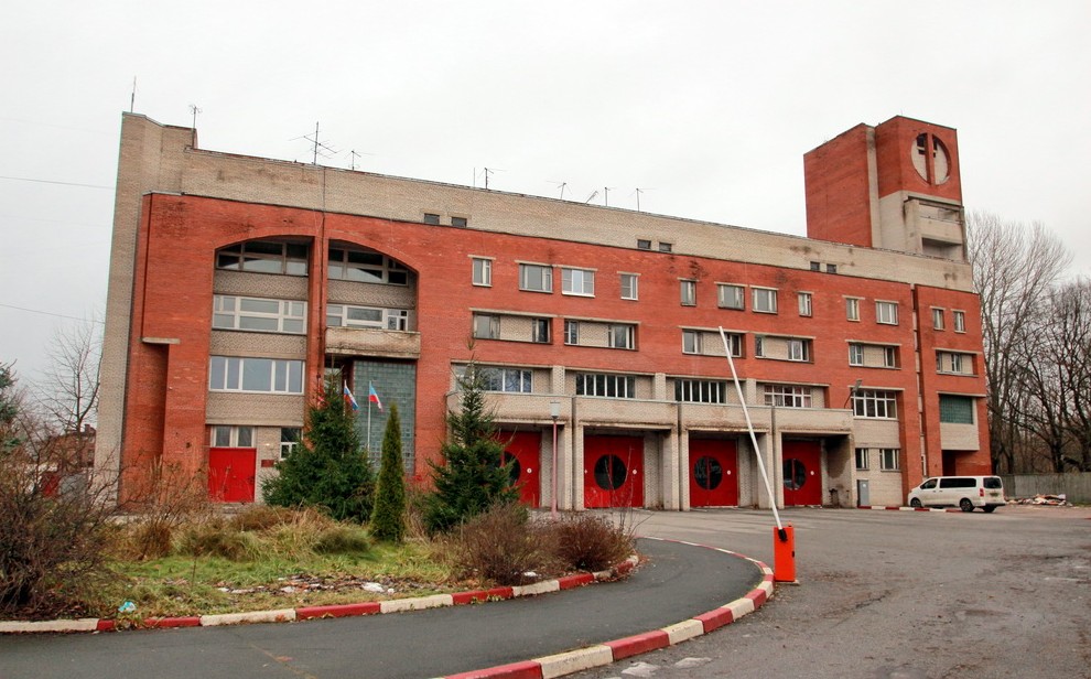 Четырехэтажное пожарное депо было построено в 1988 году близ изгиба переулка Декабристов у перекрестка с улицей Одоевского. Под него отвели часть Смоленского лютеранского кладбища площадью 0,7 гектара. Авторами проекта указаны Владимир Реппо и Татьяна Хрущева.