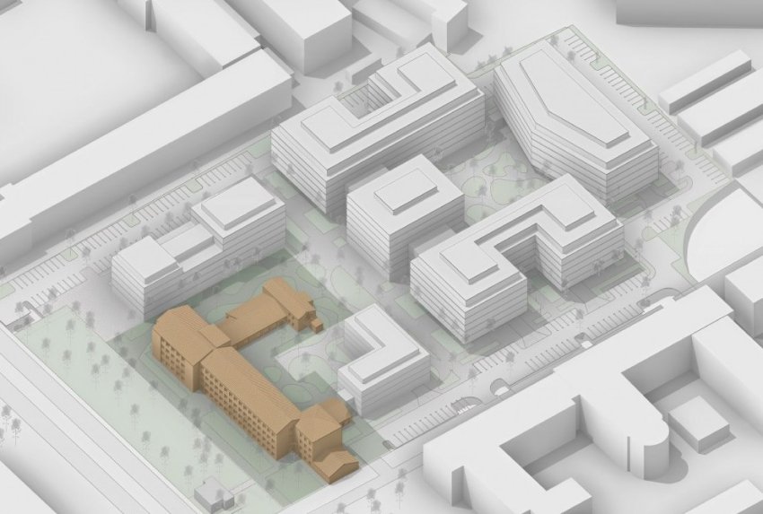 Остальную территорию, судя по картинкам, отдадут под плотную застройку предположительно офисными зданиями.