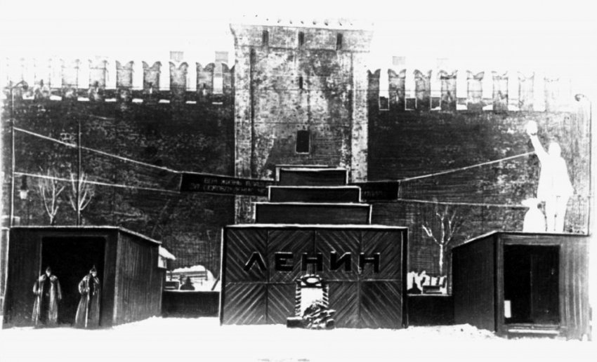 В Доме Союзов, куда доставили архитектора, и где собрались уже все первые лица молодого советского государства, ему сообщили, что умер Владимир Ленин, и ему, Щусеву поручается спроектировать временное сооружение-усыпальницу, чтобы тысячи советских людей могли проститься с вождем.