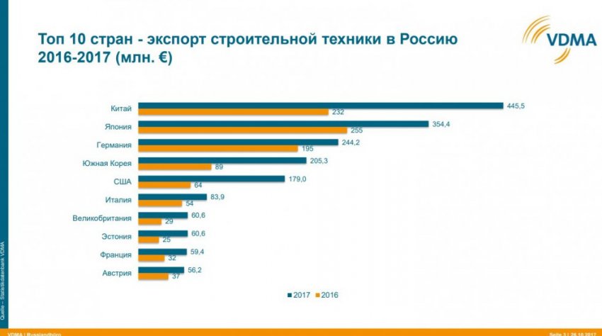 — Во всех странах за рынок борются и отечественные производители, и иностранные. В России сильные позиции в области строительной техники занимают Китай, Япония, Германия. Все остальные поставщики по объемам уступают этим трем игрокам.