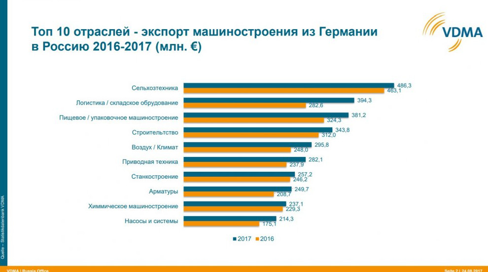 — Россия, в плане рамочных условий, — это показывают и различные бизнес-рейтинги – за последние 15 лет развивалась в лучшую сторону. Единственное, что тормозит немецких производителей техники – и это причина того, что пока еще не все немецкие участники машинного бизнеса сюда пришли – это объем рынка. Потому что, в целом, российский рынок, конечно, впечатляет. Но если смотреть на конкретную нишу, её объем может и не быть достаточным для того, чтобы открыть здесь производство.
