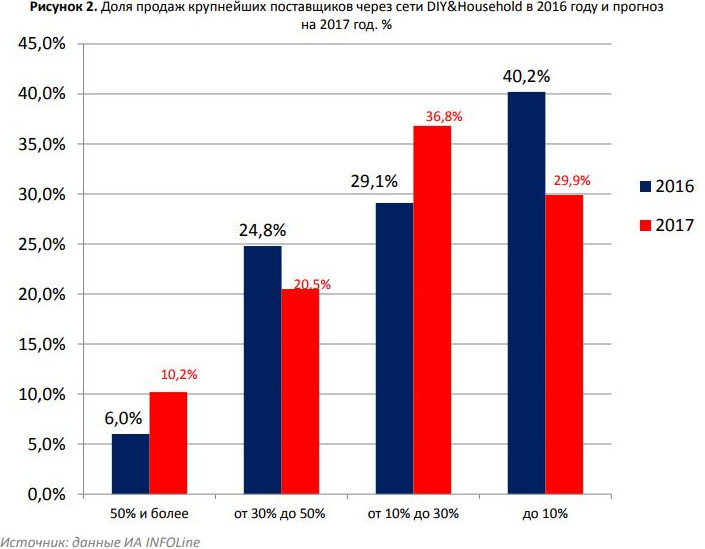 2016 год стал первым с 2010 года, когда новых торговых точек DIY-рынка открылось на пять меньше, чем закрылось. В тот год с рынка ушло 48 объектов. Среди них были «Метрика», «Домоцентр» и ГК «Трест СКМ».