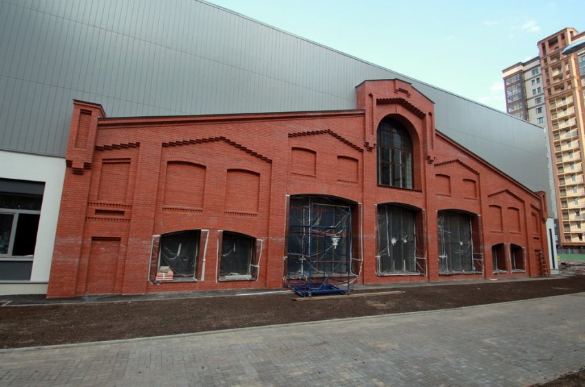 Изначальным проектом, разработанным ООО «Архитектурная мастерская Рейнберга и Шарова», планировалось, что фасад производственного корпуса включат в объем новой школы. Но этого не произошло. Отказался заказчик и от воссоздания. Вместо этого в состав новых фасадов включили пародии на абстрактную промышленную архитектуру. Сами новые фасады выполнены в модном «стиле» хаотизм.