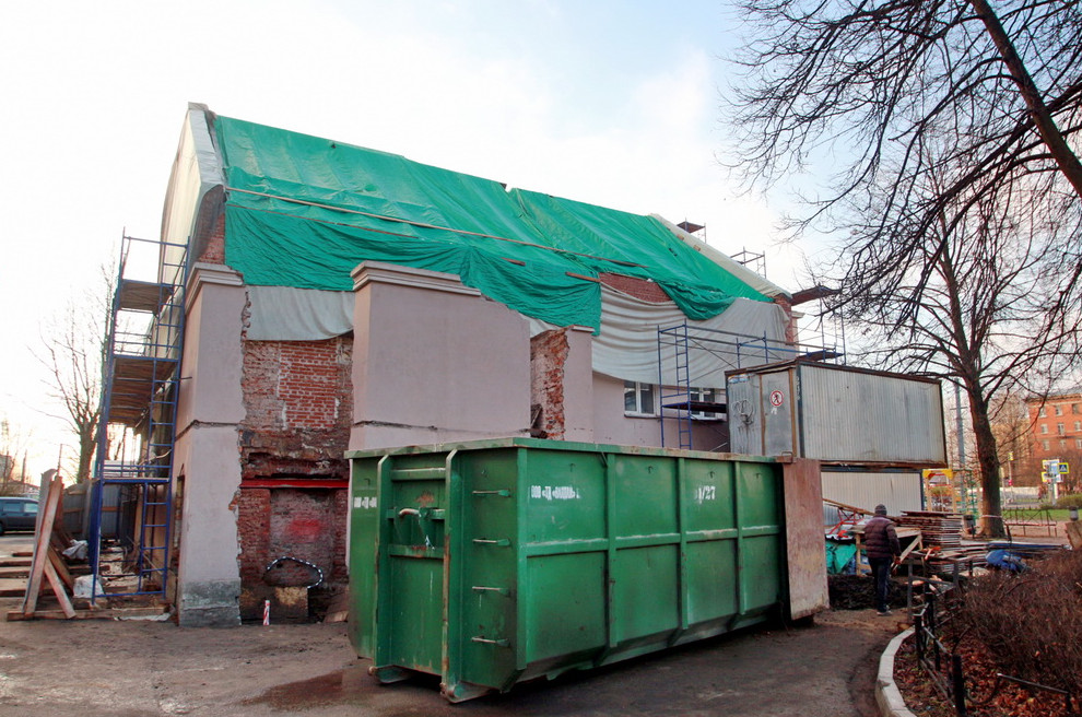 Работы начались в августе. Заказчиком указано OOО «Юринвестстрой». В настоящее время надстройка уже осуществлена. Со двора старинный дом лишился части капитальных стен. Завершиться всё должно осенью 2021 года.