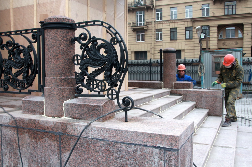 Странное место: времена закрутились в спирали, которые наложились друг на друга, и создается ощущение, что вот пройдет сейчас мимо молодая Ахматова, кутаясь в шаль, и я даже не удивлюсь. Церковь, опутанная лесами, совсем не похожа на новодел, скорее на реставрируемое здание.