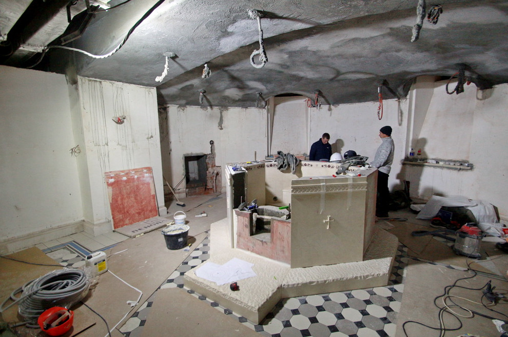 — Кирпич мы подобрали максимально приближенный к историческому, чтобы у людей, которые не знают, что храм был когда-то разрушен, осталось ощущение, что ему 130 лет. Даже гранит в цоколе специально обработан дедовским способом, — продолжает рассказ отец Богдан. — Мы по-новому приспособили помещения, которые некогда служили хозяйственным нуждам. Здесь будет не просто церковь, а некое подобие духовно-образовательного центра, а в подвальном помещении расположится музей и крестильня.