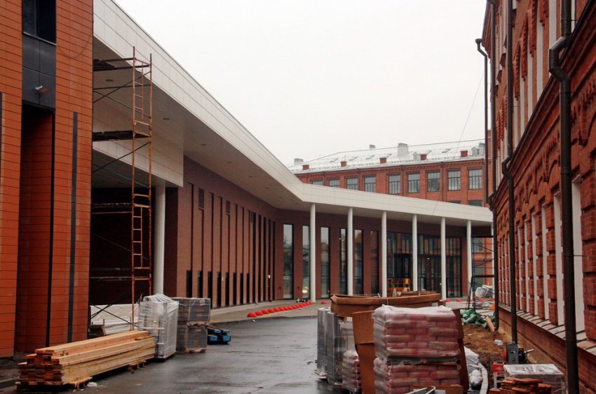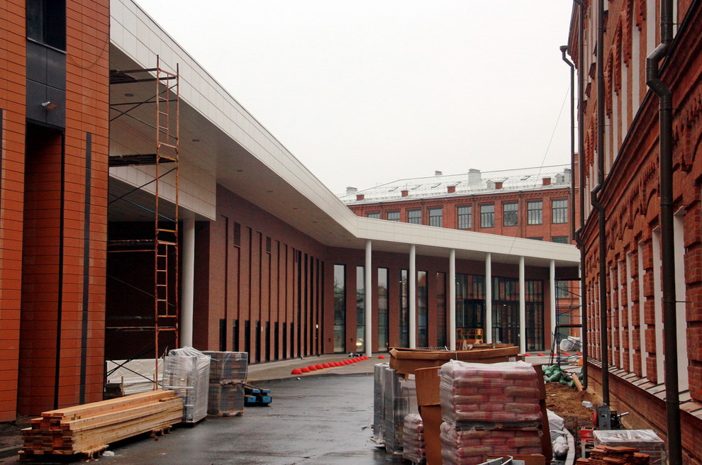 Разрешение на строительство гипермаркета ООО «Максидом» получило весной 2019 года. В документах работы назывались «реконструкцией здания под объект торговли», но фактически возведение шло с нуля: в 2017-м были снесены здания с дореволюционными фрагментами во дворе, а в 2019-м — советский корпус вдоль улицы Одоевского.