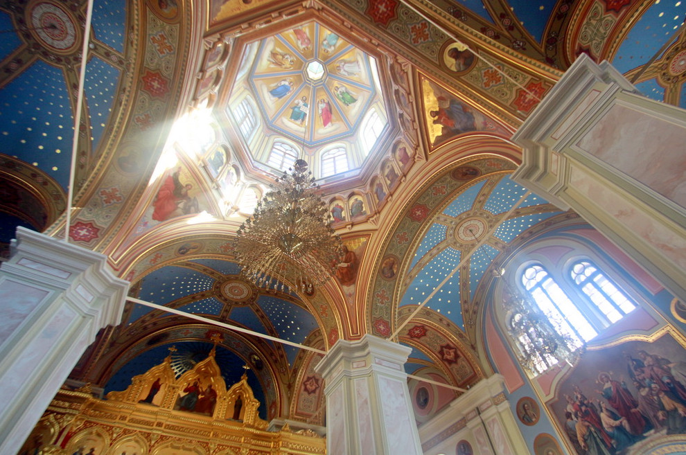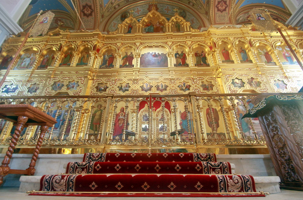 В самой церкви много света, но ладан и воск еще перебивает запах цементного раствора. Новенький алтарь, отражая солнечные лучи, сияет так, что его сложно рассмотреть — глаза слепит.