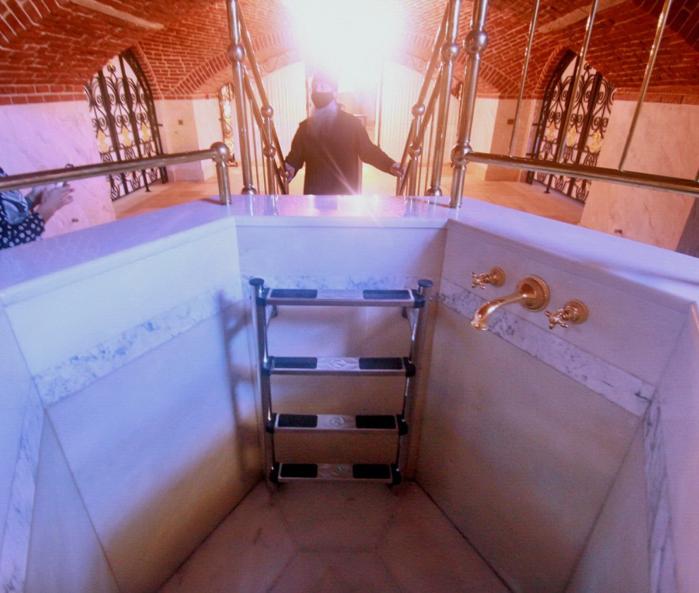Через музей проходим в крестильню, посреди которой, прямо под алтарем, устроена современная мраморная купель для крещения взрослых. А рядом оборудована комнатка для подготовки к обряду и детская купель. Лично меня в ней тронул заботливо поставленный пеленальный столик.